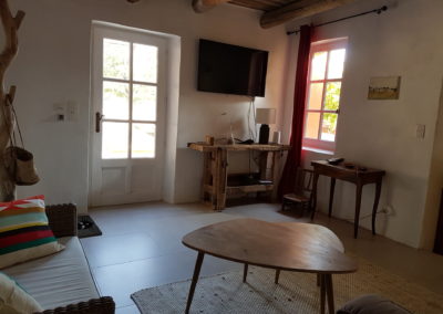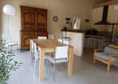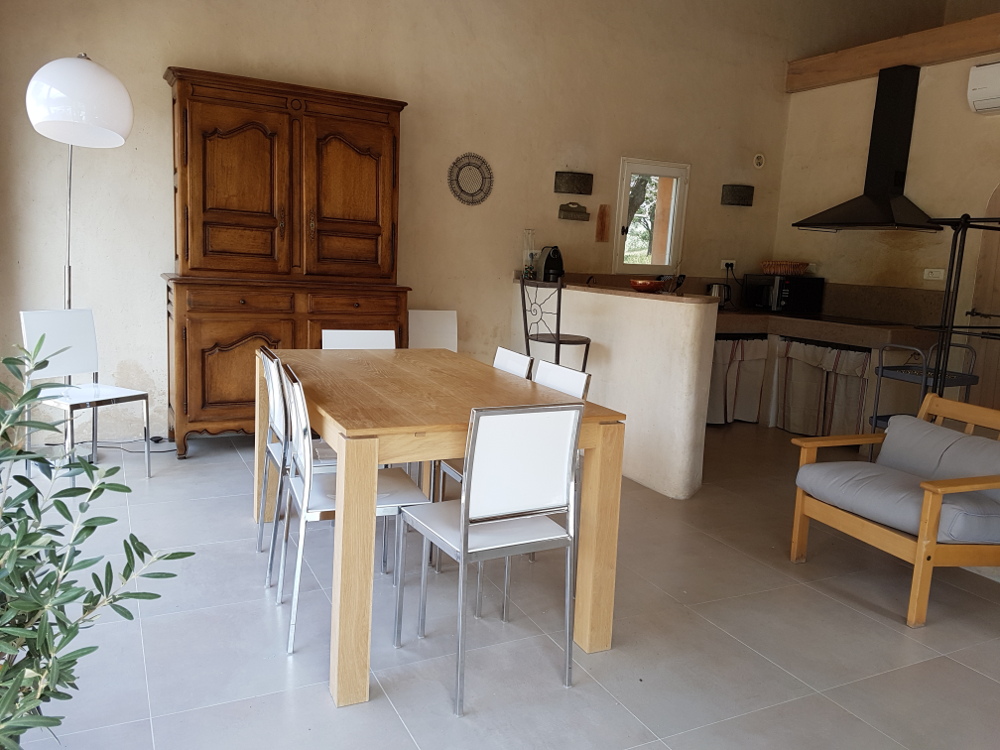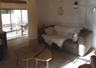La capacité de couchages de cette maison est de 8 personnes; elle se situe tout près de la piscine et sa grande terrasse permet de recevoir une trentaine de convives ; ceci en fait la maison favorite lorsque la privatisation du domaine démarre le vendredi soir : une soirée en petit comité, proche de la piscine pour finir l’organisation du week end à venir ;