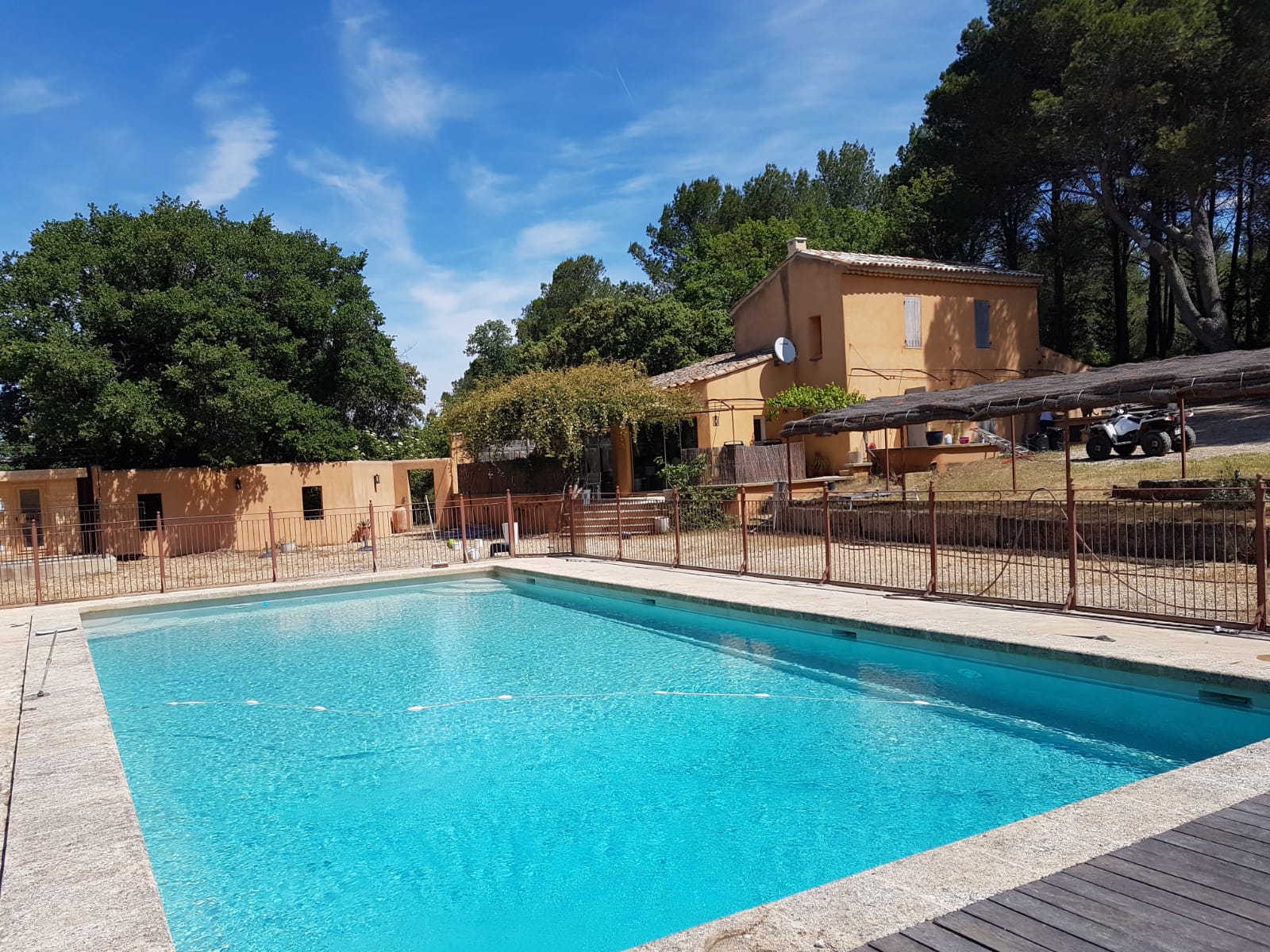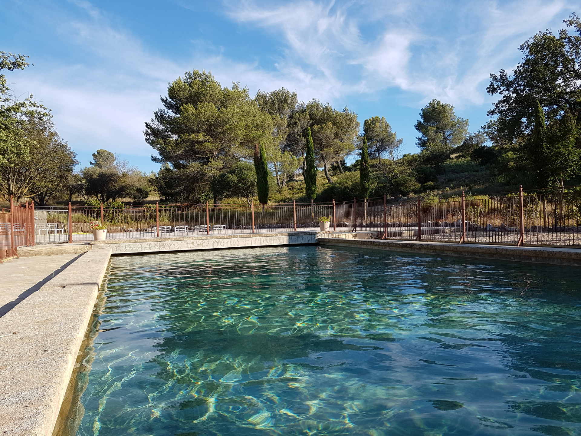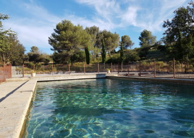 Une balustrade aux normes de sécurité entoure entièrement la piscine pour que les « pitchouns » soient en sécurité et les parents sereins.